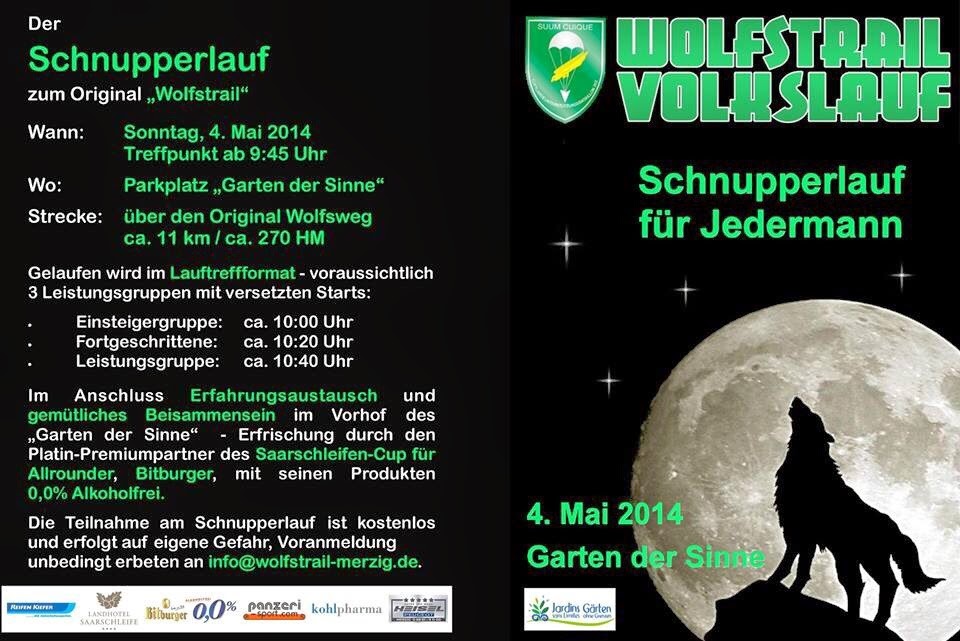 Am Sonntag fand in Merzig der Probelauf für den Wolfstrail, welcher im Juni startet, statt. Bis auf die Laufpassage durch die Kaserne "Auf der Ell" ist die Strecke 1:1 identisch mit dem Trail im Juni.