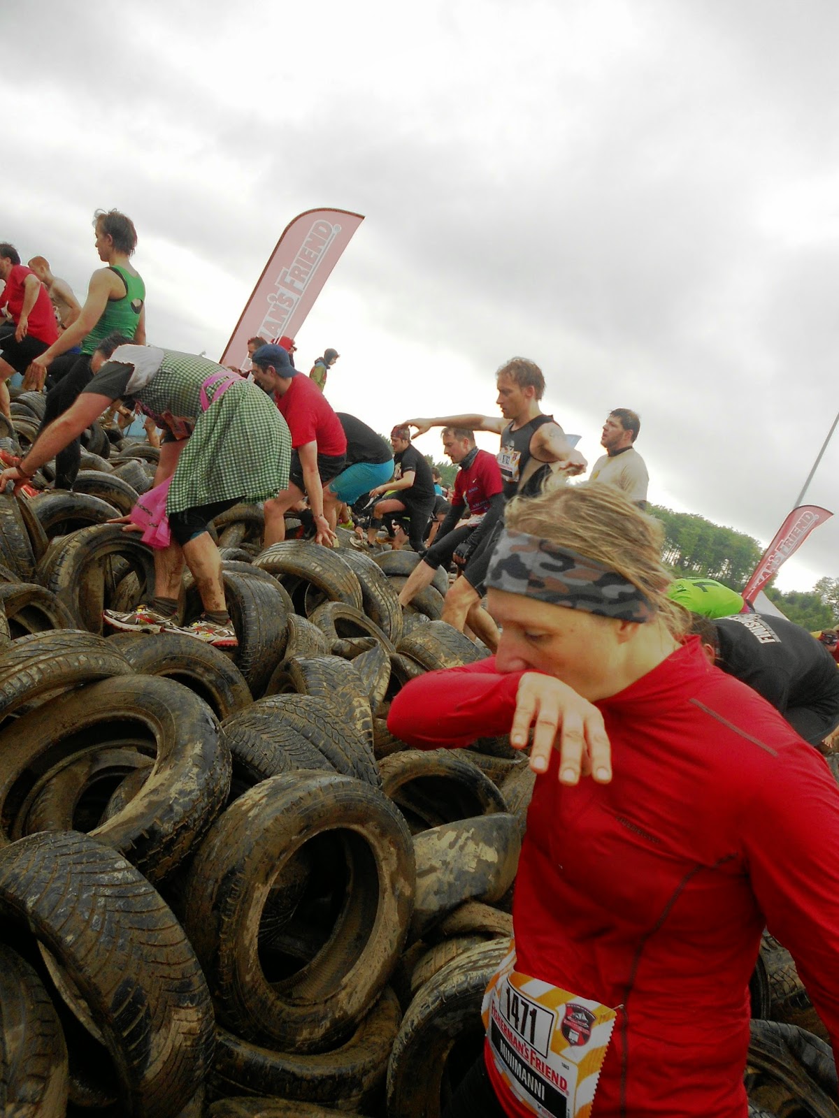 Ein Meer aus Reifen war Hindernis, 15 BROOKS GUMMILICIOUS, wir entschlossen uns wieder außen vorbei zu laufen, da dort die Reifenberge nicht zu hoch waren. Es war ganz schön wacklig und bei ein falschen Tritt auch ganz schön schmerzhaft.