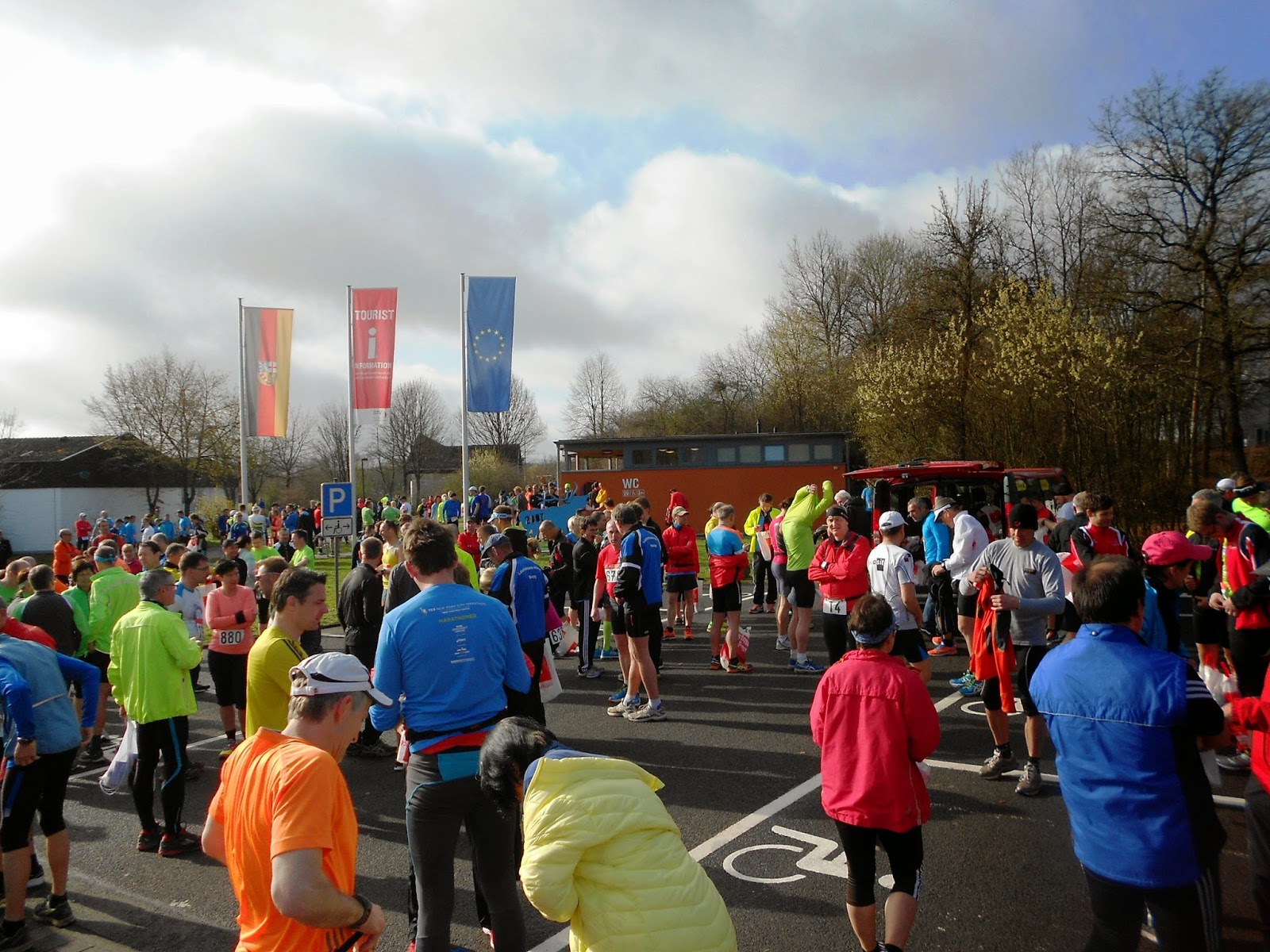 Ich stieg in den Bus, der mich zum Startpunkt Musikpavillon am Bostalsee brachte. Ich packte meine Kleidertüte mit den Warmachklamotten und gab sie ab. Ein Kleinbus brachte dann die Tüte zurück zum Ziel, wo ich sie am Ende des Laufes abholen konnte. Allein an dieser Organisation, können sich manche Vereine mal eine Scheibe abschneiden.