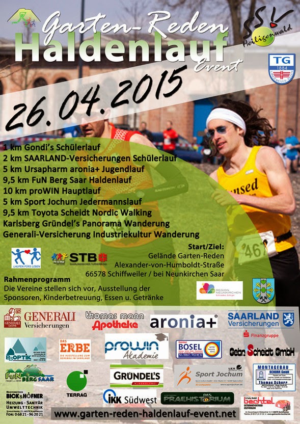 Bei mir geht es nächsten Sonntag mit dem Haldenlauf in Reden weiter. Dort werde ich wieder beim 10,6 km Hauptlauf an den Start gehen.
