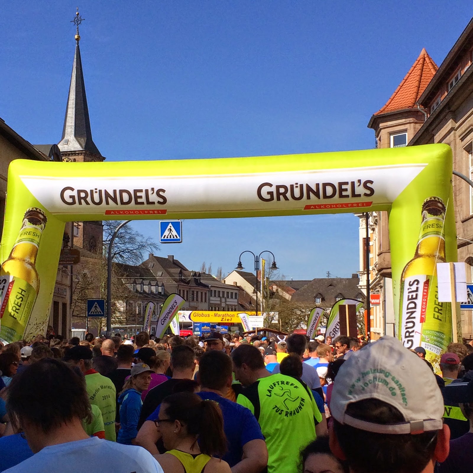 Neben dem Marathon gab es bei dieser Veranstaltung auch einen Kidsmarathon (2,195 km Strecke), einen Teammarathon (die 42,195 km werden als Staffellauf durchgeführt) und einen Halbmarathon. Da ich bei dieser einzigartigen Veranstaltung, an den Start gehen wollte, machten wir uns am Sonntag auf den Weg nach St. Wendel. Es findet leider in diesem Jahr nix Vergleichbares im Saarland mehr statt Ich hatte das Glück bei Karlsberg Gründels einen Startplatz zu gewinnen. Dieser Startplatz galt für die Halbmarathondistanz. Für den Kidsmarathon war ich leider zu alt. Neben dem Startplatz erhielt ich von Karlsberg noch ein Erinnerungsfoto, ein Gründels Laufshirt und einen Sixpack Gründels Fresh Radler.