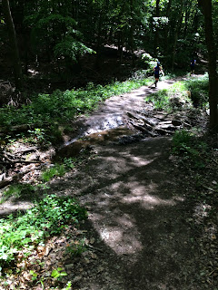 Nach der Verpflegung ging es rechts ab in den Wald. Neuland für mich. Da ich die Strecke bereits einige Male als Training gelaufen hatte, aber diesen Abzweig ausließ und nach Hause lief. Leider. Denn jetzt wurde es "trailig". Schöne ausgespülte Wege, Matsch, alles was Trail-Herz begehrt.