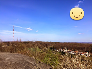 Auch die Halde Viktoria (403,5 m HH) wurde von der Natur zurückerobert und die Wege hinauf waren auch schon fast Trampelpfade. HIer musste ich einige Gehpausen einlegen. Dies war mein langsamster Kilometer. Das letzte Stück war sehr steil, aber man hörte bereits Trompetenklänge vom Gipfelkreuz. Ein Trompeter spielte für alle Läufer "Glück auf, der Steiger kommt".